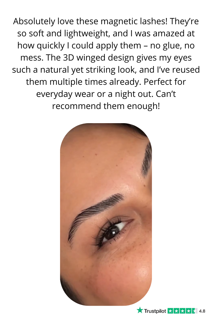 Discover the next level of effortless beauty with our new winged magnetic lashes. Soft, reusable, and designed for a natural 3D look, they snap on in seconds with the included magnetic applicator – no glue, no stress. Perfect for everyday elegance or a show-stopping night out, these lashes give your eyes a captivating, flawless finish every time.